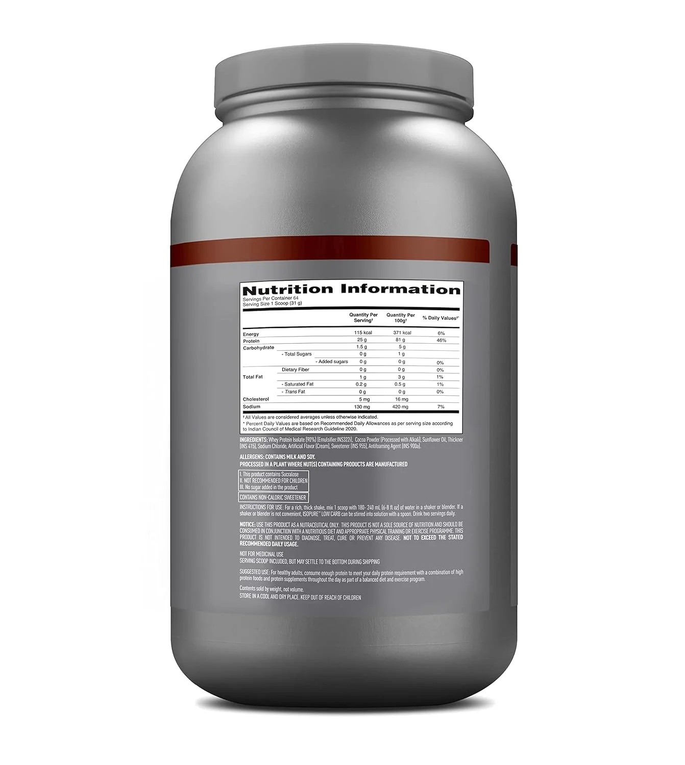 Designed for peak performance, this 100% whey protein isolate formula delivers 25 grams of premium protein per serving, ensuring exceptional quality without excess fat, cholesterol, sugars, or fillers.