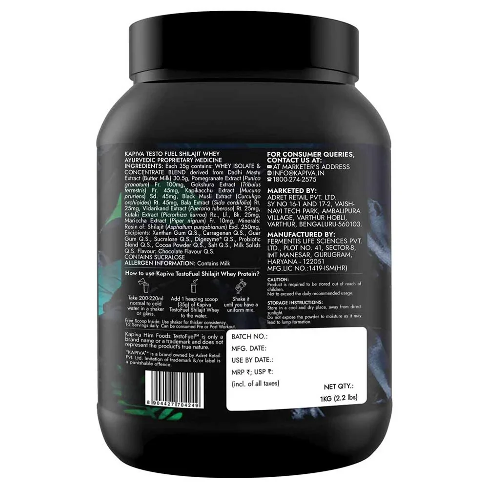 Fuel your muscle growth, strength, and endurance with Kapiva TestoFuel Shilajit Whey, the ultimate blend for peak performance!