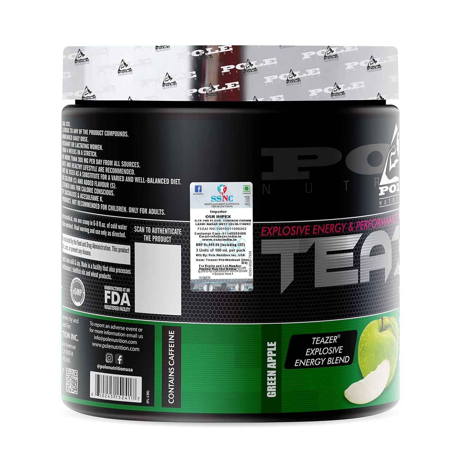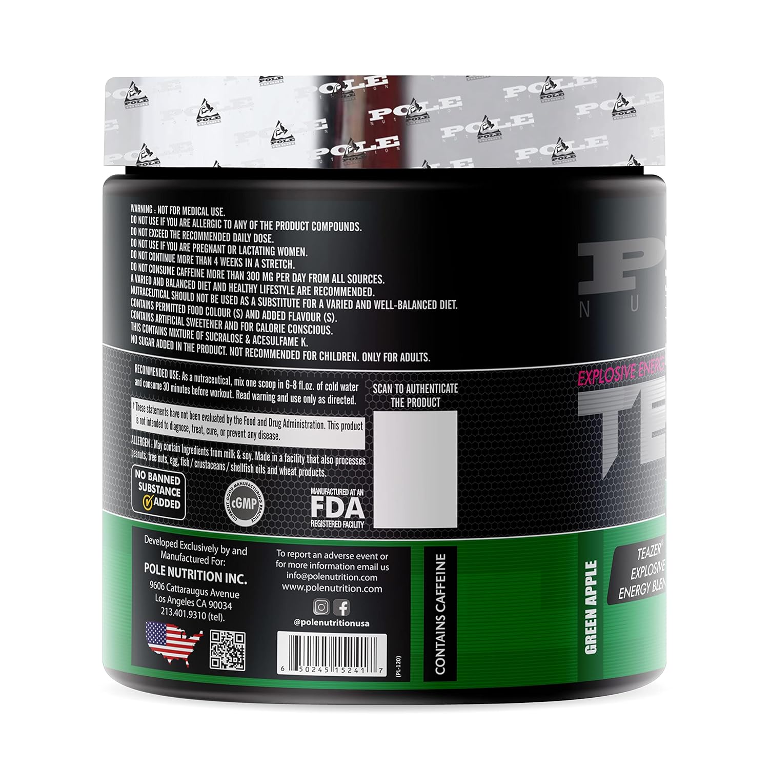 Pole Nutrition Teazer is marketed as a high-intensity pre-workout supplement designed to enhance energy, focus, endurance and muscle pump for training sessions. For example: “Delivering the most effective, explosive and focused workout experience possible; Teazer is the safest and strongest pre-workout on the market.”